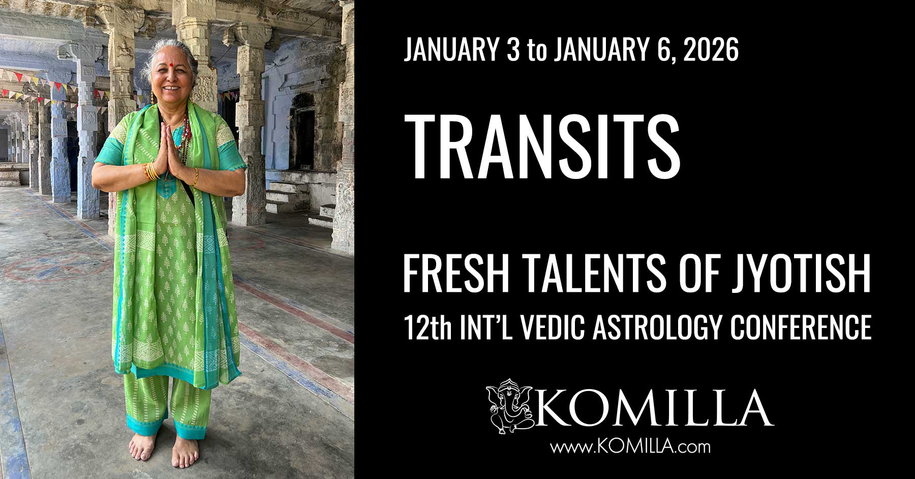 | 7:00 am to 8:30 am | Komilla Sutton (USA & India) | Planetary Transits for 2026 - Intense Conjunctions of Mars Rahu, Mars Saturn, Jupiter Ketu and Eclipses. |