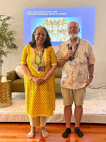 This conference is a blend of great Jyotish masters and students of Komilla Sutton, Alumni of Komilla's academy who are now Jyotish masters in their own right. Many new speakers get the first opportunity to present their knowledge after years of studying Vedic Astrology. Great knowledge is shared, and fresh outlooks on Vedic Astrology make it a great conference to attend.